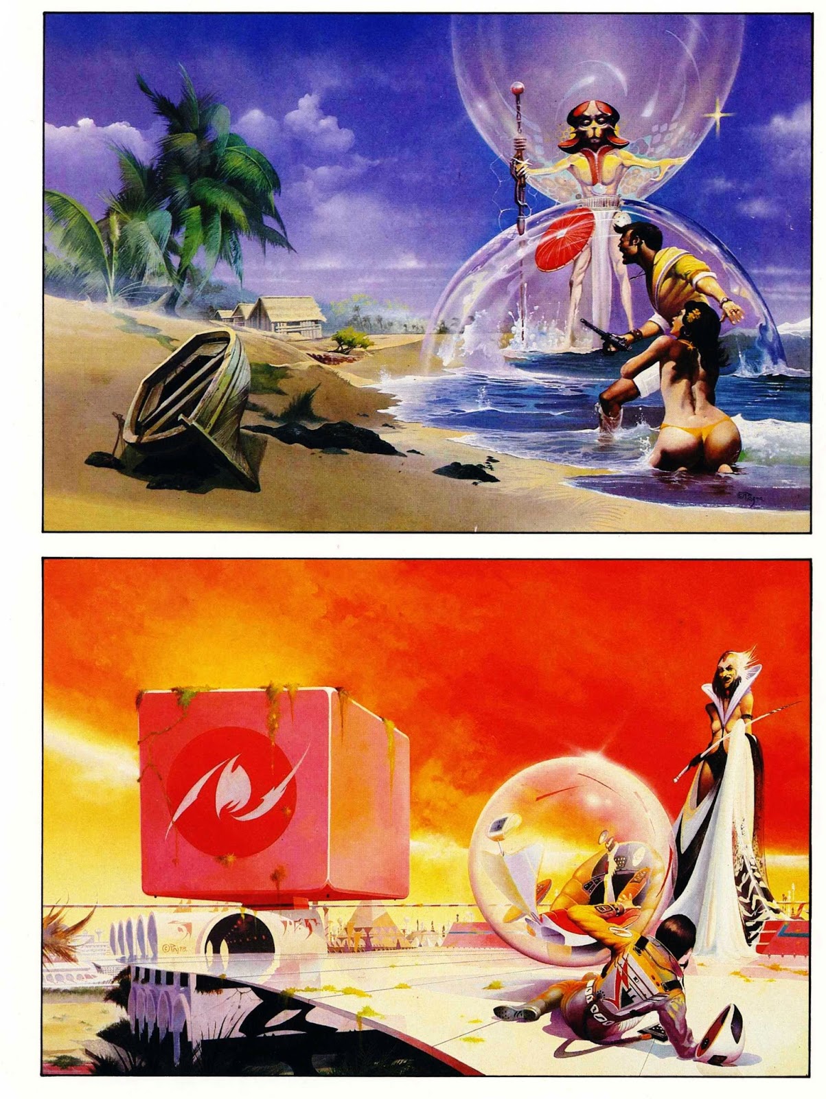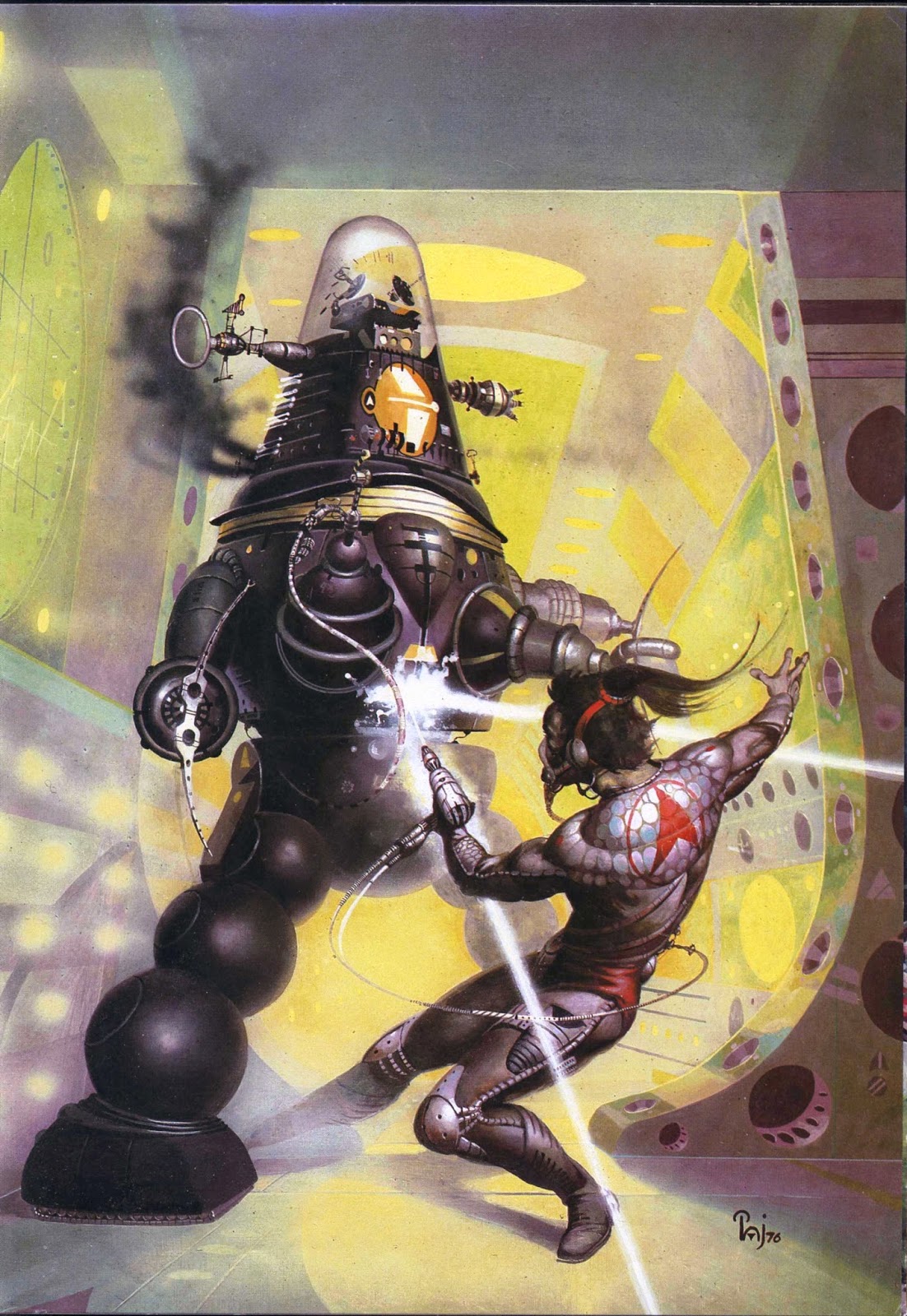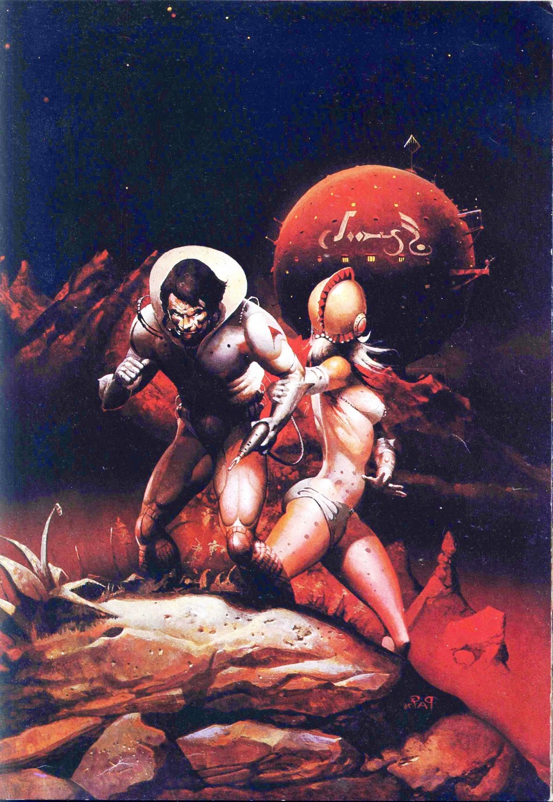 Solar Wind, the book, is a collection of Jones's sf and fantasy artwork published during the interval 1978. While the majority of Jones's commissions were for UK-based publishers like Granda, Futura, and Sphere, some of his works are going to be recognized by US readers, particularly those repurposed as cover illustrations for classic early issues of Heavy Metal magazine.